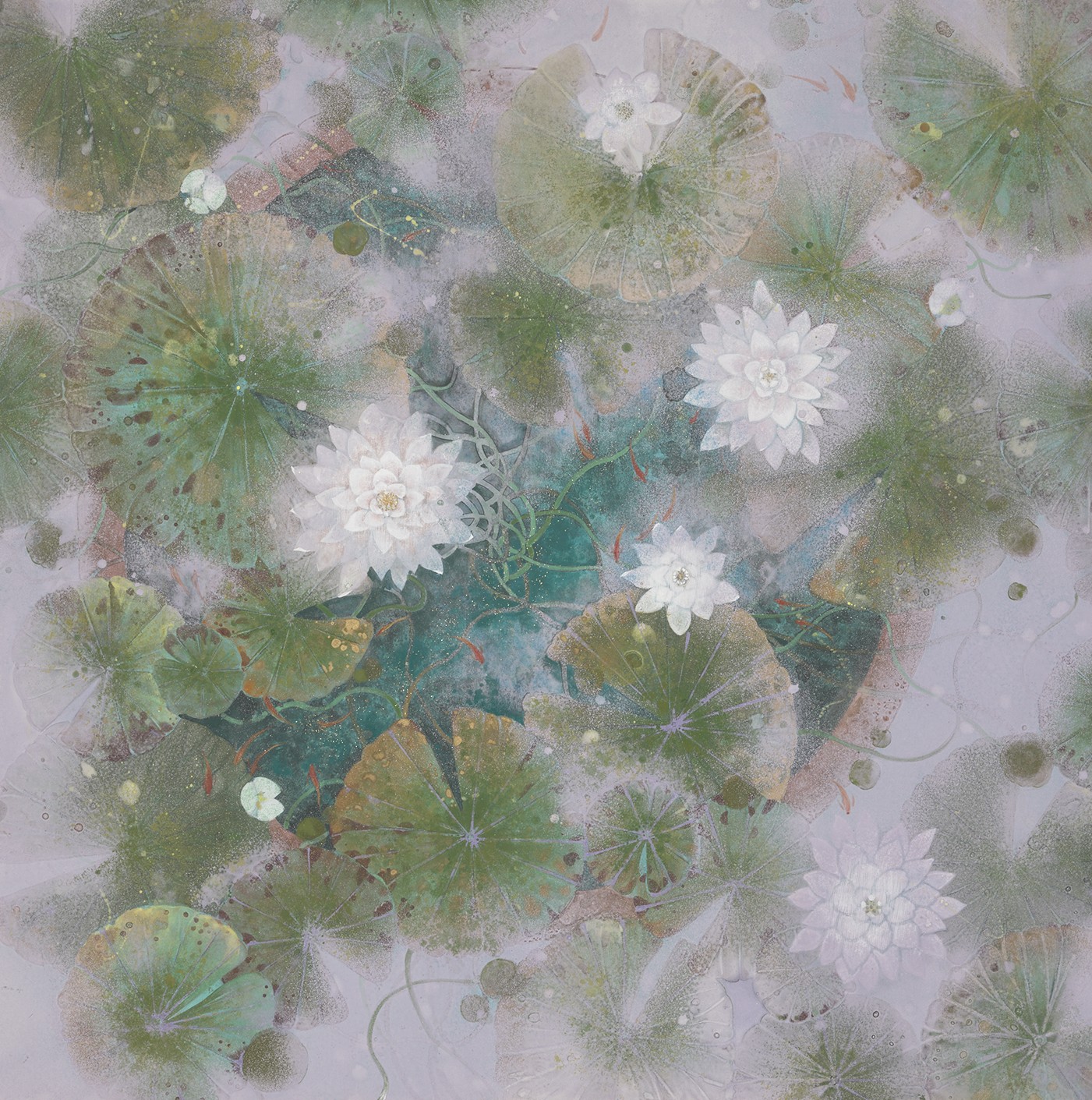 靄のひらく池